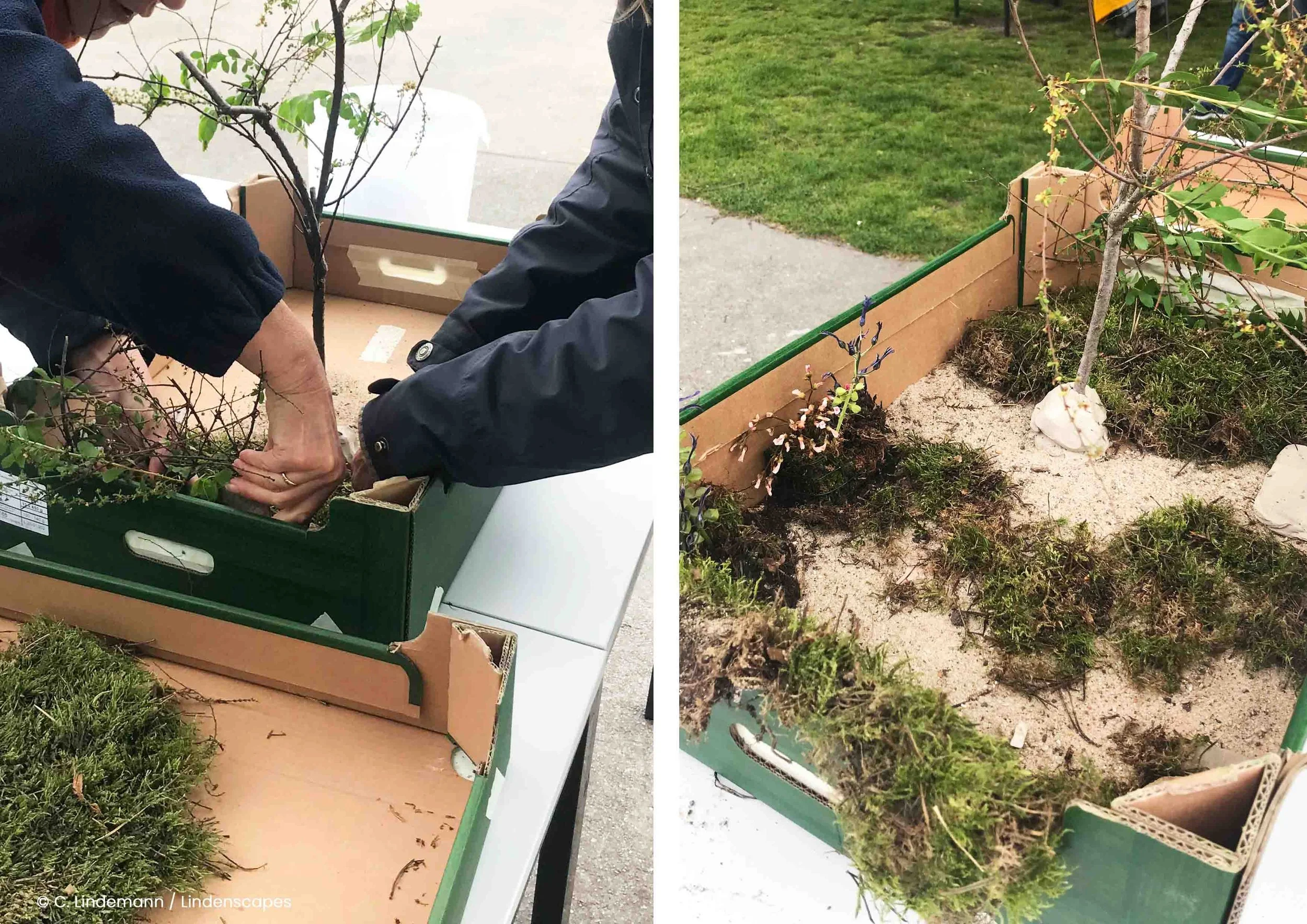 Um Wünsche und Ideen darzustellen, bauen Kinder und Erwachsene gemeinsam Modelle aus Naturmaterialien. Diese Modelle machen Bedürfnisse sichtbar – auch dort, wo Worte fehlen.